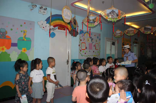 米脂交警大队王沙沟中队走进滨河幼儿园上好暑假前的安...