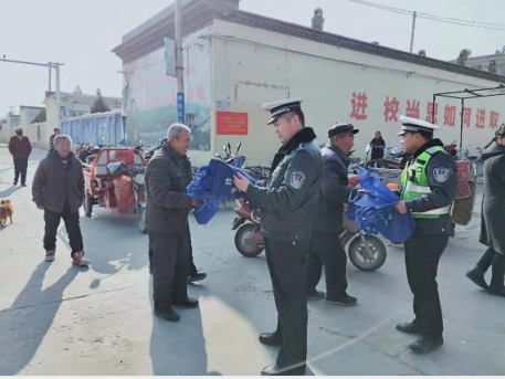 本网陕西榆林讯(高晋军,董虎熊,通讯员,冯晓丽)为进一步加强冬季道路交通管理工作,切实提高广大群众交通安全意识,有效预防和减少道路交通事故发生,12月20日,米脂交警大队王沙沟中队民警到镇子湾村开展交通安全知识宣传,全力确保辖区冬季道路交通安全形势平稳。
